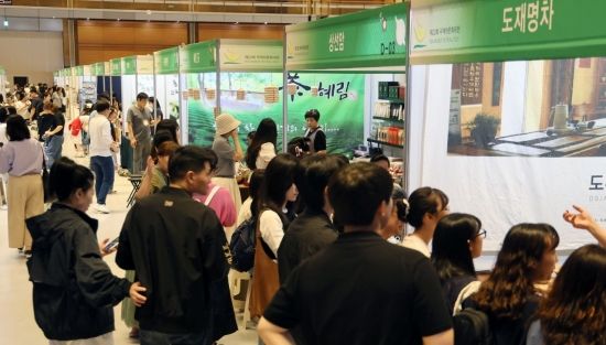 5일 서울 강남구 코엑스에서 열린 국제차문화대전을 찾은 관람객들이 전통 차를 시음하고 있다.