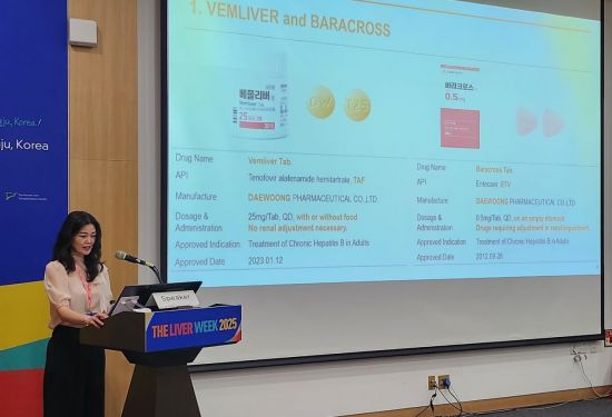 대웅제약은 지난달 30일 경주화백컨벤션센터(HICO)에서 열린 'The LIVER WEEK 2025'에서 만성 B형간염 치료제 '베믈리버(TAF)'의 4상 임상시험 결과를 발표했다.
