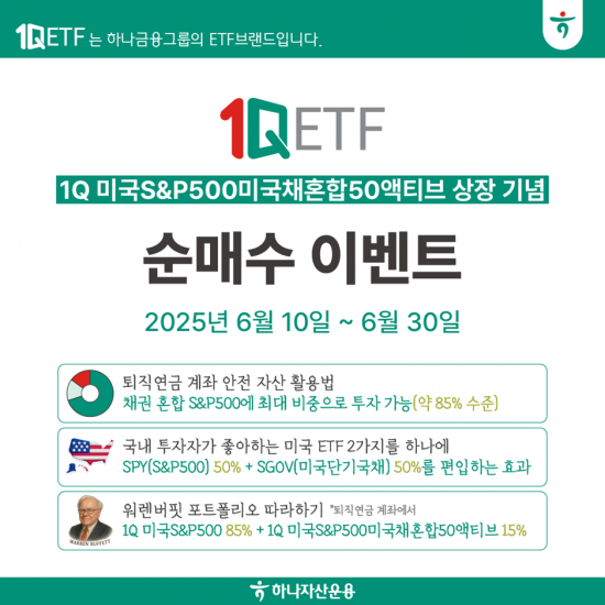 하나자산운용은 10일 국내 최초로 채권혼합형 중 S&P500에 최대 50%까지 투자하는 '1Q 미국S&P500미국채혼합50액티브 ETF'를 신규 상장한다고 9일 밝혔다.