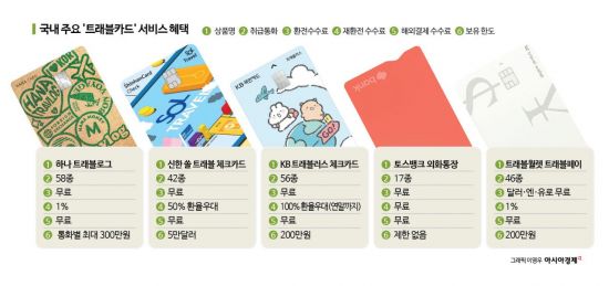 해외여행에 특화된 체크카드인 '트래블카드' 인기는 여전히 뜨겁다. 국내 시중은행과 토스뱅크, 카카오뱅크 등 대부분의 은행이 잇따라 상품을 내놓고 경쟁적으로 다양한 서비스를 제공하고 있다. 해외여행을 준비하고 있다면 우선 이들 중 하나를 골라 미리 발급해 두는 것이 좋다.