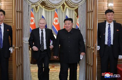 김정은 북한 국무위원장이 러시아 국경일을 맞아 블라디미르 푸틴 대통령에게 축전을 보내 양측의 전면적 전략적 동반자 관계를 과시했다. 우리 측의 선제적인 대북 확성기 방송 중단, 도널드 트럼프 미국 대통령 2기 행정부의 대화 제스처에 묵묵부답을 이어가는 상황에서다.
