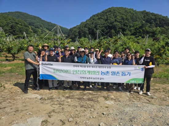 딜로이트 안진회계법인은 임직원 30여명이 허식 딜로이트 안진 고문(전 농협중앙회 부회장) 및 농협중앙회 충북지역본부의 지원 하에 지난 11일 충북 음성군 생극면에 소재한 복숭아 과수원을 찾아 일손 돕기에 나섰다고 12일 밝혔다.