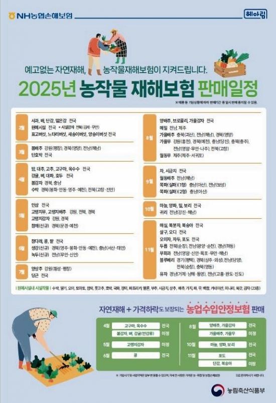 농작물재해보험은 태풍, 홍수, 가뭄, 병해충 등 다양한 자연재해로 인한 피해를 보상해 안정적인 농업 경영을 돕는 제도다. 특히 벼 보험의 경우 집중호우, 조수해, 화재는 물론, 흰잎마름병, 도열병, 벼멸구 등 병충해 피해도 특약을 통해 보장받을 수 있다.
