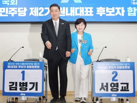 민주당 내부에서는 김 의원과 서 의원 중 누가 될지 장담하지 못하는 분위기다. 김 의원과 서 의원이 지난 10일 원내대표 후보 토론회 등에서 내란 종식·이재명 정부의 성공 등 '명심(이재명 대통령의 의중)'을 강조하고 있는 만큼 공약의 차이점은 크지 않다. 또한 김 의원과 서 의원은 이재명 당대표 체제에서 각각 수석사무부총장, 최고위원을 지냈고, 고향과 지역구도 영남(김 의원은 경남 사천·서 의원은 경북 상주)이다. 지역구도 각각 동작갑(김 후보)·중랑갑(서 후보)으로 서울이라서 요직 경험·지역 구도 형성도 불가능하다.