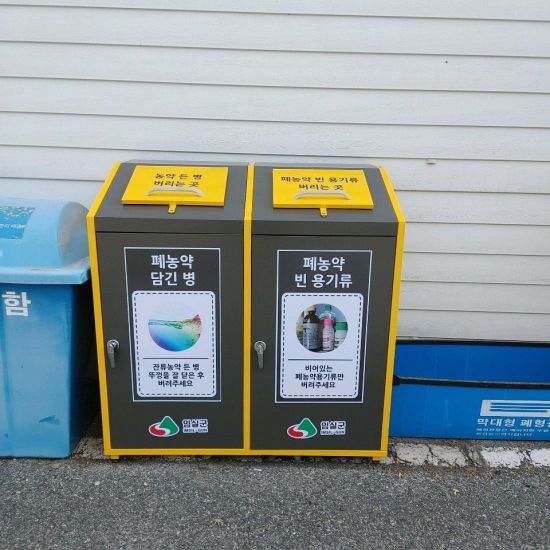 이번에 읍·면사무소에 배치된 폐농약 수거함은 두 개의 함으로 구성돼 있으며, 폐농약이 남아 있는 농약병째 버리는 수거함과 빈 농약 용기 수거함으로 구분해 배출하면 된다.
