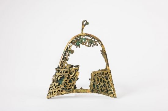 해당 금동모관은 5세기 후반~6세기 초 삼국시대에 제작된 유물로, 좌우 측면에 삼각 문·봉황문·용문 등을 투 조기 법으로 정교하게 표현한 걸작이다.