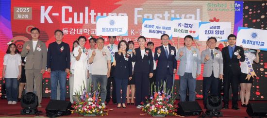 강기정 광주시장이 15일 오후 북구 동강대학교 나이팅게일홀에서 열린 '2025 제2회 K-컬처 페스티벌'에 참석, 축사 후 참석자들과 함께 기념 촬영을 하고 있다. 광주시 제공