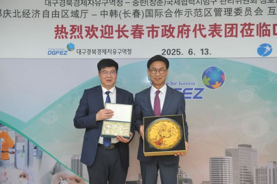 대구경북경제자유구역청(청장 김병삼)은 지난 13일 중국 창춘 국제협력시범구(당위원회 서기 류나이쥔)와 양 지역 간 투자유치 상호협력 활성화를 위한 업무협력 협약식(MOU)을 체결했다.