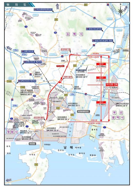 해당 공사의 사업비는 1조4000억원으로, 이 중 동부건설이 맡은 1공구의 공사금액은 3400억원이다. 동부건설은 70%의 지분을 갖고 주관사를 맡았다. 1공구는 부산 강서구 송정동에서 경상남도 김해시 수가동까지 총연장 6.86㎞의 4차로 도로와 터널 3개소, 교량 1개소, 지하차도 1개소 등을 시공하는 프로젝트다.