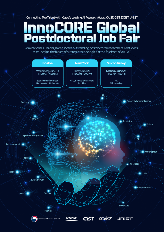 KAIST, DGIST, GIST도 각기 △초거대 언어모델 혁신 연구단 △바이오 체화형 피지컬 AI △뇌질환 조기진단 AI+나노융합 △AI-혁신신약 연구단 등을 주관하면서 4대 과기원은 올해부터 총 400명의 박사후연구원을 채용하고 총 8개 연구단을 운영할 예정이다.