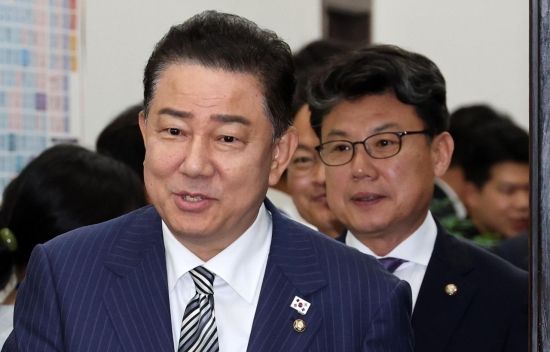 김병기 더불어민주당 대표 직무대행 겸 원내대표가 17일 국회에서 열린 원내대책회의에 참석하고 있다.