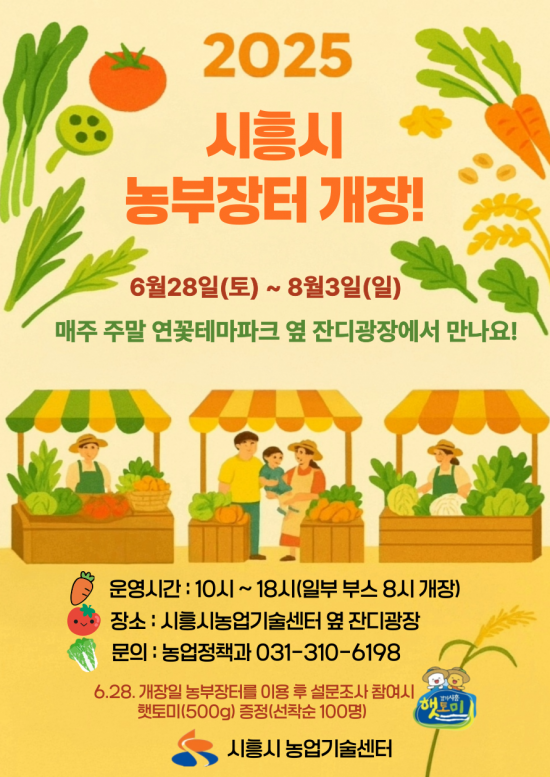 경기도 시흥시는 지역 농산물 소비 촉진과 농가 판로 확대를 위해 오는 28일부터 연꽃테마파크 잔디광장에서 '농부장터'를 운영한다.