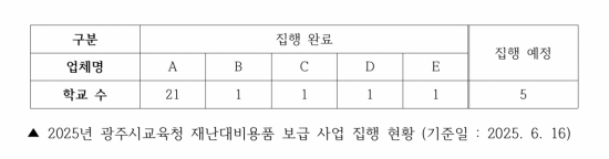광주교육청이 올해 처음 추진한 재난대비용품 보급 사업이 특정 업체에 계약이 몰리며 공정성 논란에 휩싸였다. 교육청 출연 재단 이사가 대표로 있는 업체가 다수 학교에 납품한 사실이 드러났지만, 교육청은 정산 과정에서조차 업체명을 확인하지 않고 있어 감사 필요성이 제기된다.