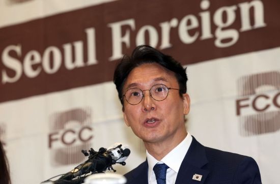 김민석 국무총리 후보자가 17일 오후 서울 중구 프레스센터에서 열린 외신기자간담회에서 질문에 답변을 하고 있다.