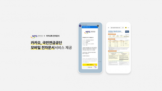 카카오가 국민연금공단과 협업해 모바일 전자문서 서비스를 제공한다고 19일 밝혔다. 카카오톡 이용자라면 별도의 회원가입이나 애플리케이션(앱) 설치 없이 연금 관련 다양한 문서를 간편하게 받아볼 수 있게 됐다.