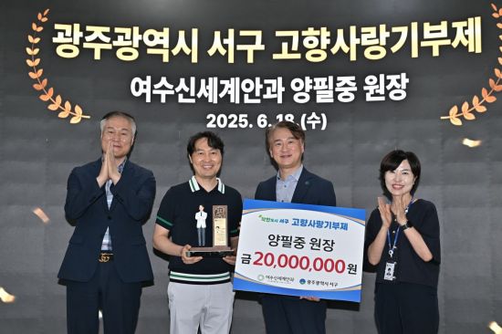 서구는 지난 18일 고향사랑기부금 2,000만원을 기부한 양필중 여수 신세계안과 원장에게 감사패를 전달했다고 19일 밝혔다.