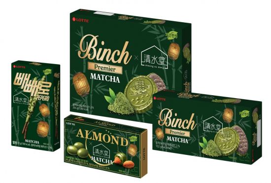 롯데웰푸드는 도심 속 푸른 정원과 말차 메뉴로 유명한 카페 '청수당'과 협업한 말차맛 시즌 한정판 제품을 출시했다. '롯데웰푸드X청수당' 컬래버 제품은 '빈츠', '아몬드볼', '빼빼로' 등 3종이다.