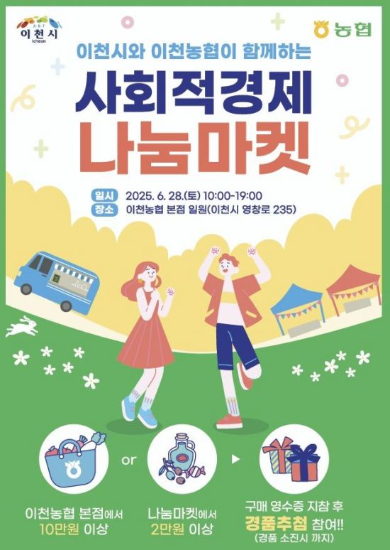 경기도 이천시는 오는 28일 이천농협 본점에서 사회적경제 기획전인 '사회적경제 나눔 마켓'을 개최한다고 19일 밝혔다.