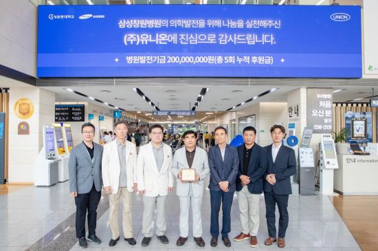 유니온은 2019년부터 올해까지 총 다섯 차례에 걸쳐 삼성창원병원에 발전기금을 전달해 왔으며, 이번 추가 기부를 통해 총 누적 금액 2억원을 기탁했다.