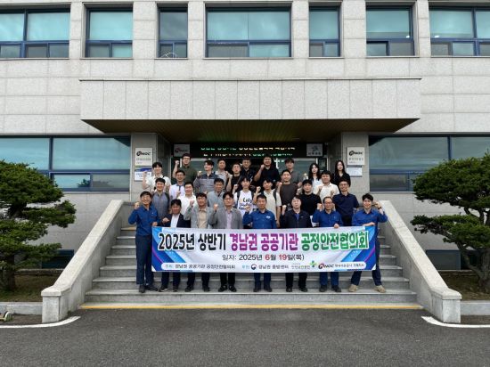한국석유공사 김종관 거제지사장(첫줄 왼쪽에서 다섯째)이 19일 오후 거제지사에서 '2025년 상반기 경남권 공공기관 공정안전협의회' 참석자들과 기념촬영하고 있다. 한국석유공사 제공