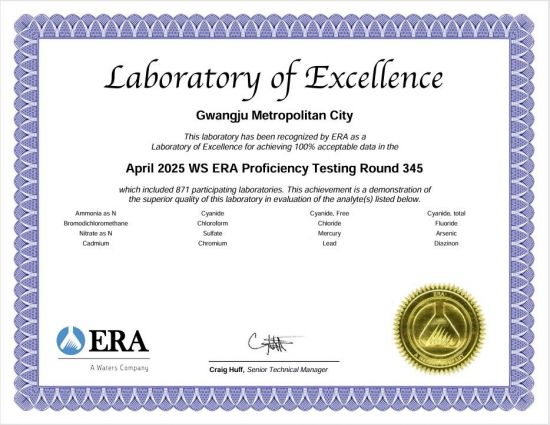 정숙경 광주상수도사업본부 수질연구소장은 "지속적으로 먹는 물 검사기관 분석 역량을 강화해 측정분석 결과에 대한 신뢰도를 높이겠다"며 "이를 통해 시민들이 수돗물을 안심하고 마실 수 있도록 최선을 다하겠다"고 말했다.