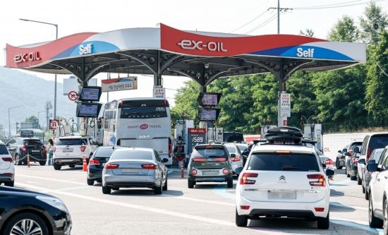미국이 이란의 핵시설을 타격하면서 중동 정세가 악화 기로에 서며 유가 상승이 우려되고 있는 23일 서울 서초구 만남의 광장에서 운전자들이 주유를 하기 위해 기다리고 있다.