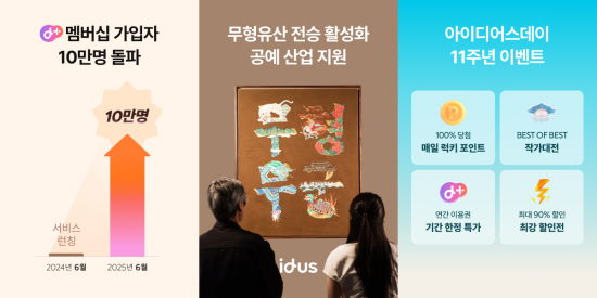 지난해 6월 출시된 디플러스(d+) 멤버십은 매월 ▲아이디어스 기획전 작품 최대 10% 추가 할인 ▲아이디어스 4000원 할인 쿠폰 ▲텐바이텐 20% 할인 쿠폰 등의 혜택을 제공한다. 출시 이후 월평균 신규 가입률 20%를 유지하며 1년 만에 누적 유료 구독자 10만명을 돌파했다.