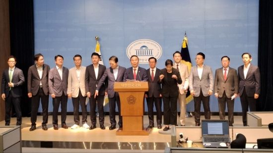 이날 긴급기자회견에는 국민의힘 성일종(충남 서산·태안), 장동혁(충남 보령·서천), 강승규(충남 홍성군·예산군), 엄태영(충북 제천시·단양군), 박덕흠(충북 보은·옥천·영동·괴산), 이종배(충북 충주) 의원, 충청권 당협위원장 전원이 참석했다.