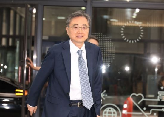 조현 외교부장관 후보자가 24일 서울 종로구 대우빌딩에 마련된 인사청문회 준비사무실로 출근하고 있다.