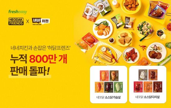 간편식 전문기업 프레시지의 자회사인 허닭프렌즈가 치킨 브랜드 '네네치킨'과 파트너십을 통해 개발한 간편식 제품의 누적 판매량이 800만개를 돌파했다고 25일 밝혔다.