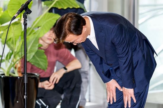 전재수 해양수산부 장관 후보자가 25일 서울 마포구 포스트타워에 마련된 인사청문 준비 사무실에 출근하며 인사하고 있다.