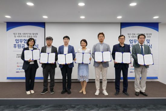 한국도로공사는 26일 한국사회적기업진흥원 대구통합센터에서 한국사회적기업진흥원, 한국부동산원, 한국장학재단, 한국전력기술(주), 한국교통안전공단, 경상북도경제진흥원과 함께 '대구·경북 지역 사회적기업 활성화 및 사회적 가치 창출을 위한 업무협약'을 체결했다. 지역 기반 사회적기업의 생태계를 조성하기 위해 지역 공공기관이 협력하기로 했다. 공동사업을 추진하는 한편 사회적기업 인식을 확산하고 상호교류를 늘리기로 했다. 청소년 대상 사회문제 해결 아이디어를 발굴하고 현실화를 지원하는 유스로컬챌린저를 추진하기로 했다. 이 사업에는 대구·경북 4개 학교에서 청소년 260여명이 참여한다.