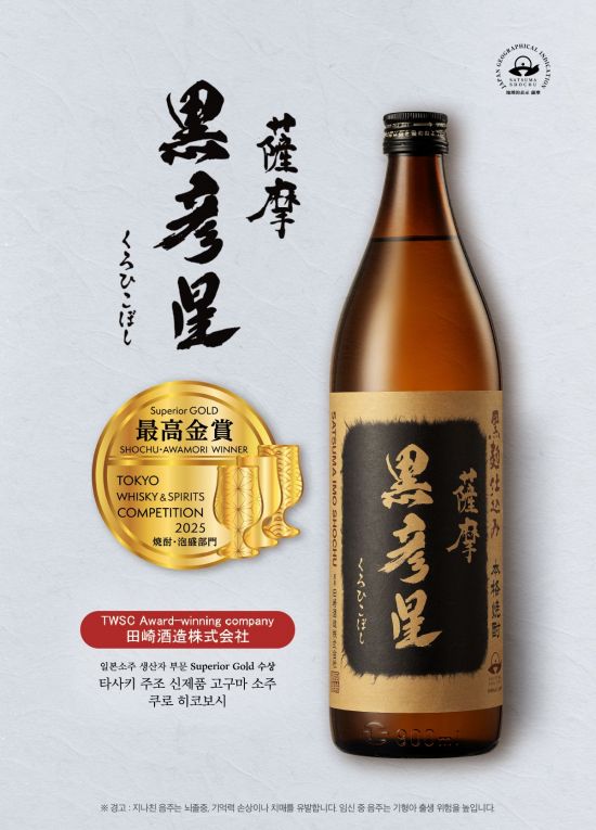 쿠로 히코보시는 일본 소주 본산인 가고시마에 1887년 설립된 가족경영 양조장 '타사키 주조'에서 생산하는 고품질의 고구마(사츠마이모) 소주다. 타사키 주조는 올해 TWSC(도쿄 위스키&스피릿)에서 일본 소주 생산자 부문 '최고금상'을 수상한 양조장이며, 가고시마 소주 정부인증제의 인증 생산자다.