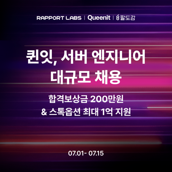 퀸잇 운영사 '라포랩스'는 서버 엔지니어 직무를 대상으로 두 자릿수 규모의 공개 채용을 진행한다고 1일 밝혔다.