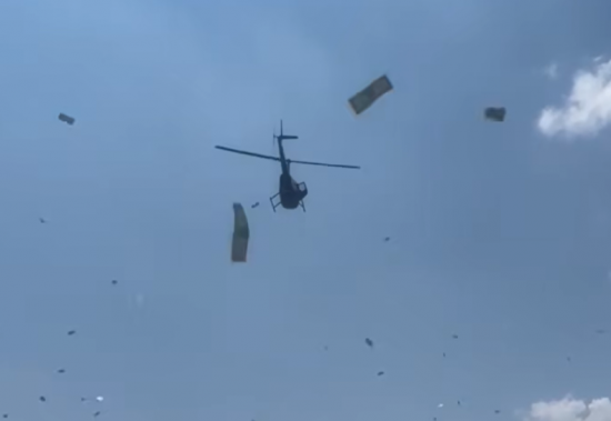 유언에 따라 헬기 띄워 5000달러 뿌려