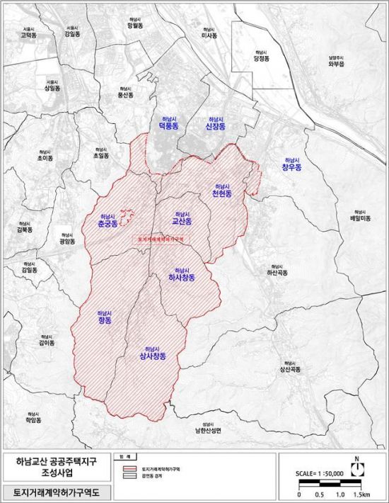 경기 하남시는 교산공공주택지구 및 인근 지역의 토지거래허가구역 지정기간이 지난 6월 30일부로 종료됨에 따라 7월 1일부터 해당 지역이 허가구역에서 해제된다고 밝혔다.