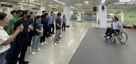 광주교통공사(사장 조익문)는 최근 서구 농성역에서 장애인에 대한 인식개선 및 배려 문화 확산을 위한 '교통약자 체험교육'을 실시했다고 2일 밝혔다.