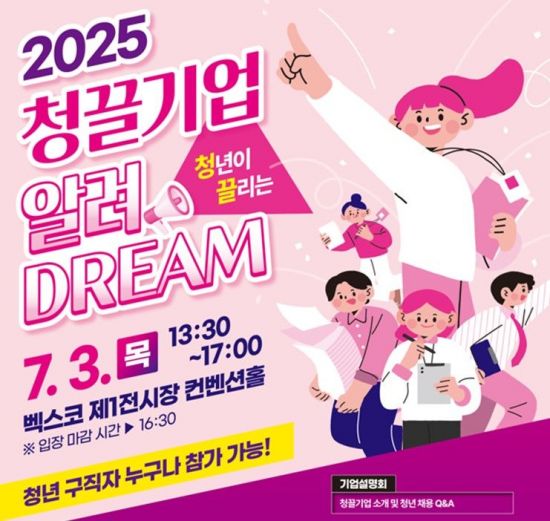 발대식 직전에는 '청끌기업 알려드림(DREAM)' 채용 박람회가 같은 장소에서 열렸다. 청년 350여명이 청끌기업 30개사와 만난 이번 행사는 홍보관, 취업특강, 현직자 토크콘서트 등으로 구성돼 실질적인 채용정보와 직무 이해 기회를 제공했다.
