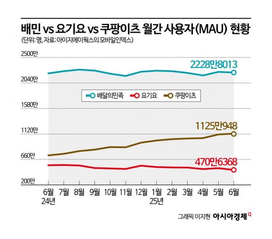 지난달 MAU 배민 2229만, 쿠팡이츠 1125만 기록…격차 더 좁혀져
