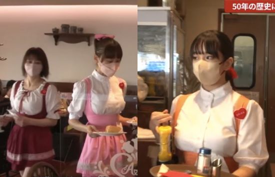 인기 모았던 여성 종업원 유니폼 그대로
