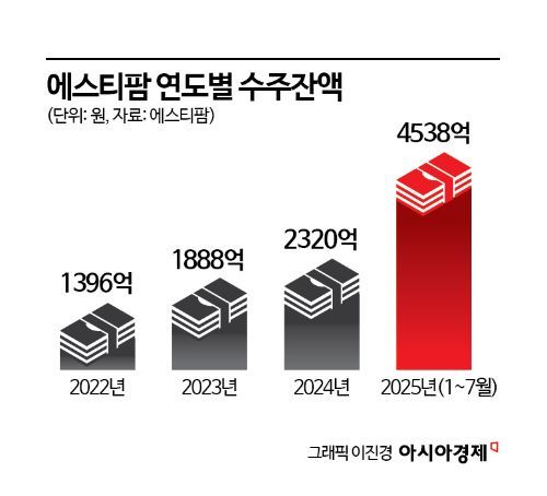 4538억원의 수주 잔액은 지난 한 해 전체 실적에 견줘 약 96%나 증가한 수치다. 에스티팜의 수주 잔액은 2022년 1396억원, 2023년 1888억원, 2024년 2320억원으로 계속 상승하고 있다.