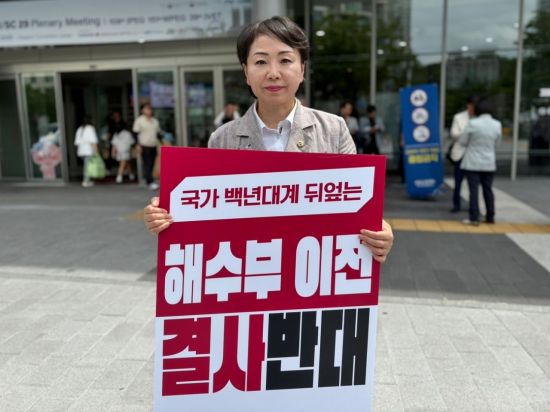 홍나영 원내대표는 "해수부 이전은 세종시민은 물론 대한민국의 미래를 위한 국가균형발전을 바라는 모든 국민의 뜻에 반하는 결정"이라며 "대통령이 국정 철학과 균형 발전의 대원칙에 입각해 이전 계획을 철회해 줄 것을 강력히 촉구한다"고 강조했다.