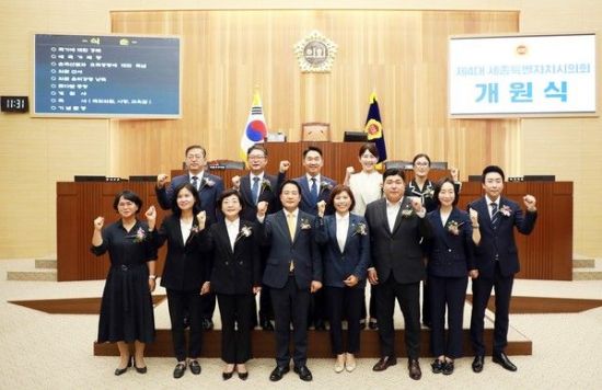 2022년 7월 세종시의회 개원식 장면. 당시 국민의힘 의원들이 전원 불참한 가운데, 더불어민주당 의원들만 모여 반쪽짜리 개원식을 진행했다. 원구성을 둘러싸고 불협화음이 생겼기 때문이다. 해양수산부와 관련, 작금의 세종시 상황도 정치권의 반쪽짜리 주장이 나온다./ 사진= 사무처 홍보기획팀 제공