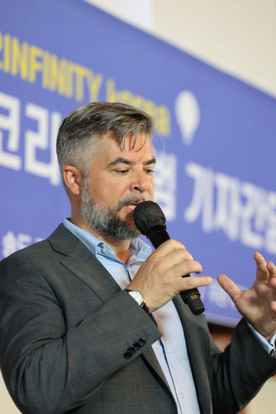 호세 마리아노 로페즈 우르디알레스 제로투인피니티 최고경영자(CEO)가 7일 오후 인천 송도 경원재 바이 워커힐에서 열린 '제로투인피니티코리아 출범 기자간담회'에서 기자들의 질문에 답변하고 있다. 제로투인피니티코리아 제공