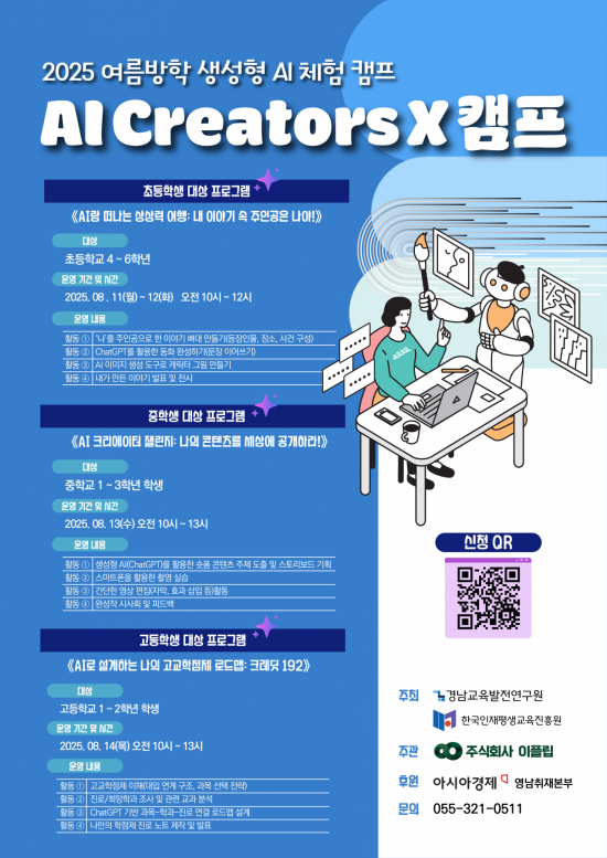 경남교육발전연구원(원장 김승오)과 한국인재평생교육진흥원(원장 박혜진)이 공동 주최하고, 주식회사 이플립(대표 홍순철)이 주관하는 'AI 창의융합교육' 여름방학 특별 프로그램이 운영된다.