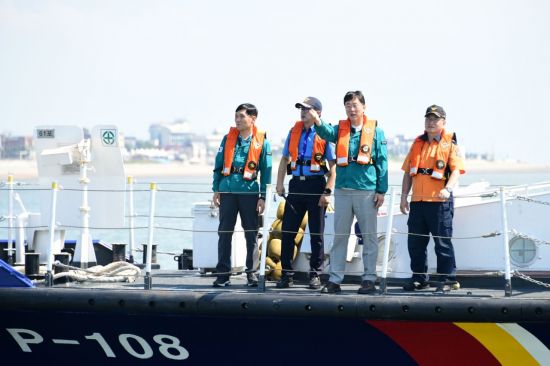 안산시가 안전 관련 유관기관 모임인 '일사천리 민생안전회의'를 생활권 중심의 지역밀착형 회의체로 확대한다. 이민근 안산시장(오른쪽 두번째)이 선박에 탑승해 해상 안전망 운영 상황을 점검하고 있다. 안산시 제공