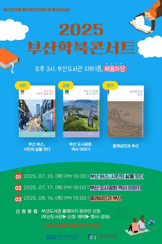 부산연구원 부산학연구센터(센터장 권태상)가 지역 연구 성과를 시민과 공유하는 '2025 부산학 북콘서트'를 오는 7월 10일부터 8월 14일까지 총 3회에 걸쳐 개최한다.