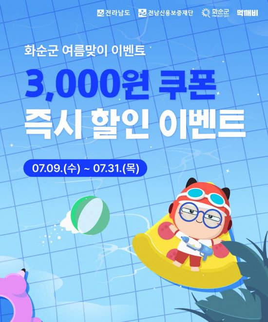 화순군(군수 구복규)은 공공 배달앱 '먹깨비' 이용 활성화와 지역 내 소비 진작을 위해 9일부터 31일까지 여름맞이 할인이벤트를 진행한다고 9일 밝혔다.