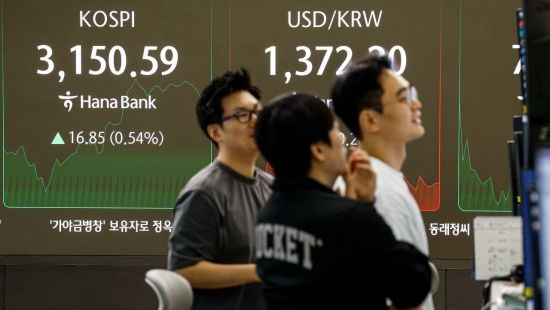 코스피 지수가 연고점을 재차 경신하며 상승세를 이어가고 있는 10일 서울 중구 하나은행 딜링룸에서 딜러들이 업무를 보고 있다.