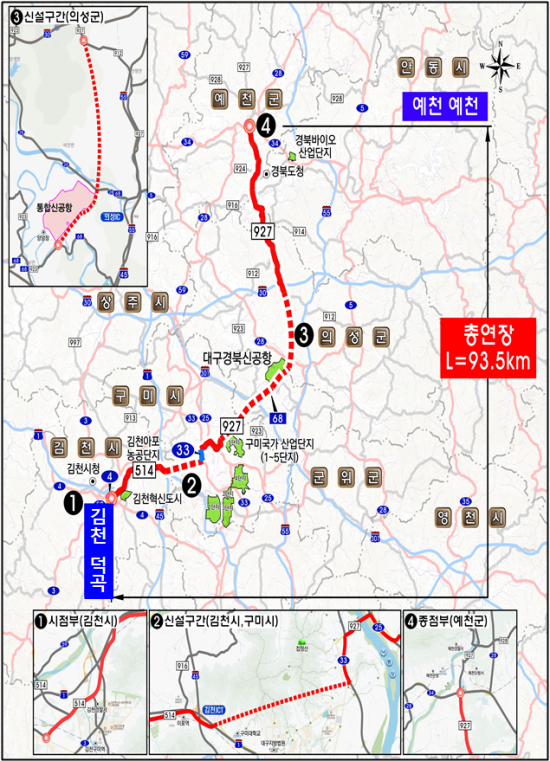 총연장 93.5㎞ 규모의 이번 노선 변경은 대구·경북 통합 신공항과 구미국가산단을 직접 잇는 국가 물류 축으로 기능할 것으로 기대된다.